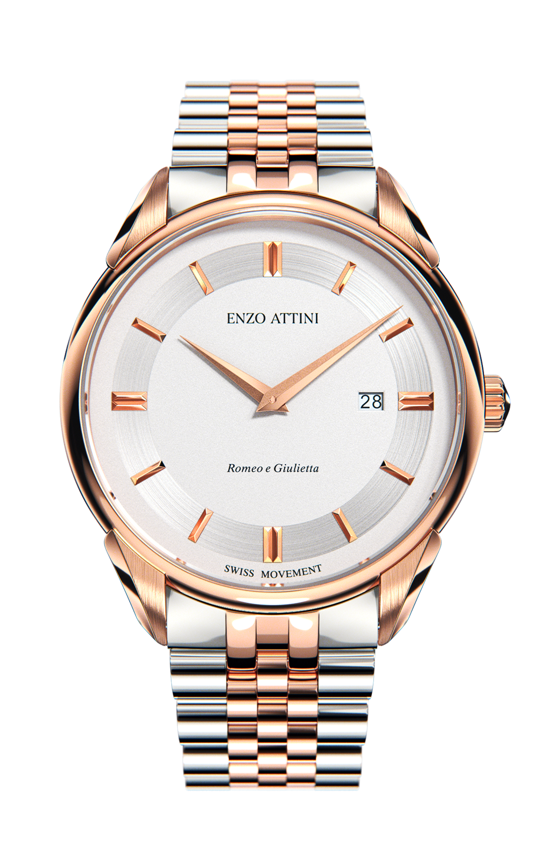 President Bracelet, Silver & Rose Gold Color, Swiss Movement.