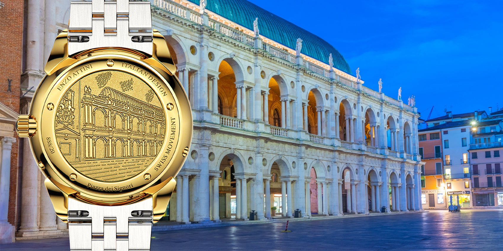 Me këtë orë, Enzo Attini përfaqëson traditën e mrekullueshme të dizajnit italian dhe trashëgimisë kulturore. Esenca e secilit dizajn dhe gdhendja e saj artizanale në kasën e pasme, janë të frymëzuara nga historia, arti dhe trashëgimia kulturore italiane, si dhe nga vendet mahnitëse që shërbejnë si destinacionet më të mrekullueshme në Itali