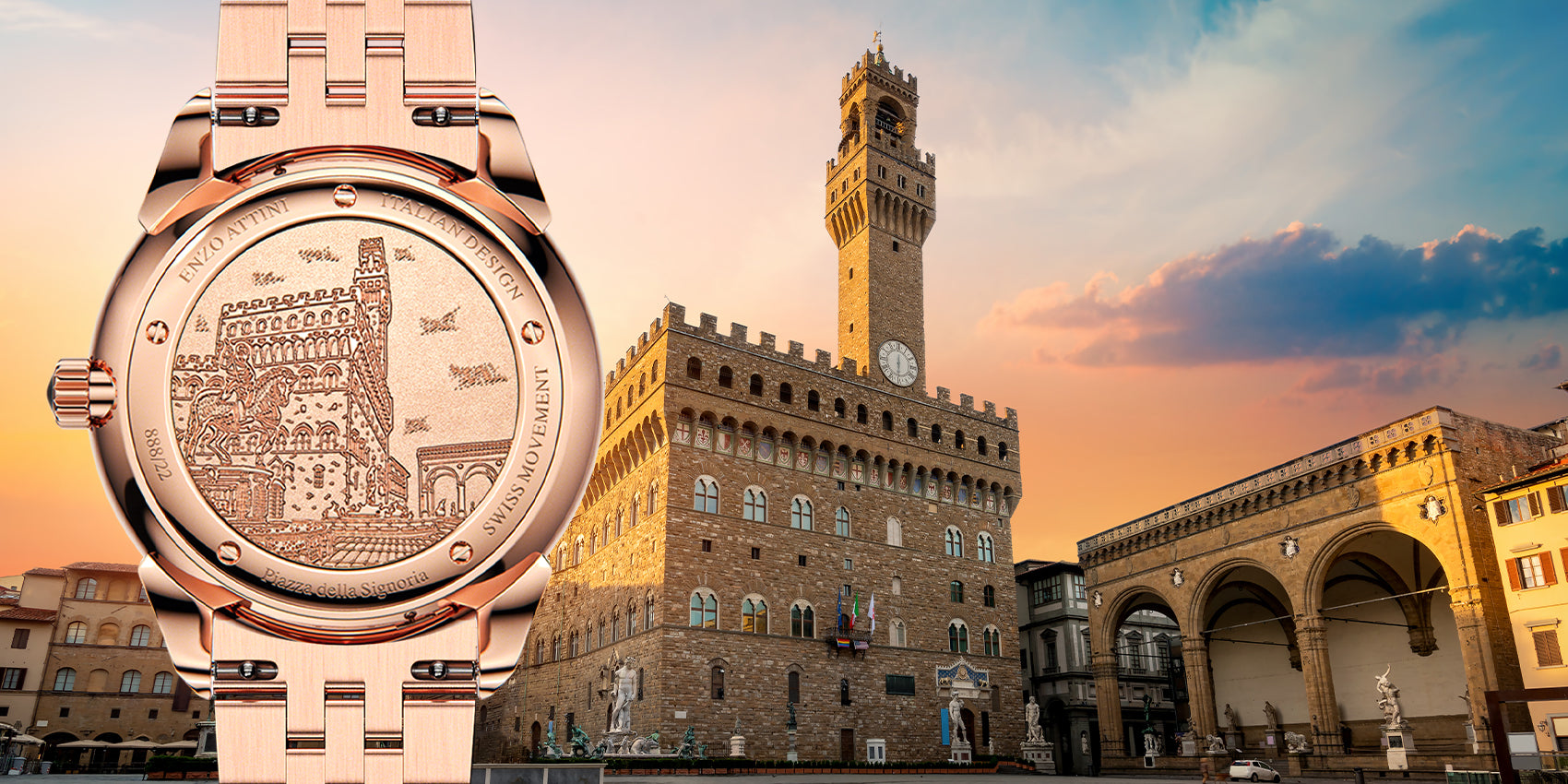 Me këtë orë, Enzo Attini përfaqëson traditën e mrekullueshme të dizajnit italian dhe trashëgimisë kulturore. Esenca e secilit dizajn dhe gdhendja e saj artizanale në kasën e pasme, janë të frymëzuara nga historia, arti dhe trashëgimia kulturore italiane, si dhe nga vendet mahnitëse që shërbejnë si destinacionet më të mrekullueshme në Itali.