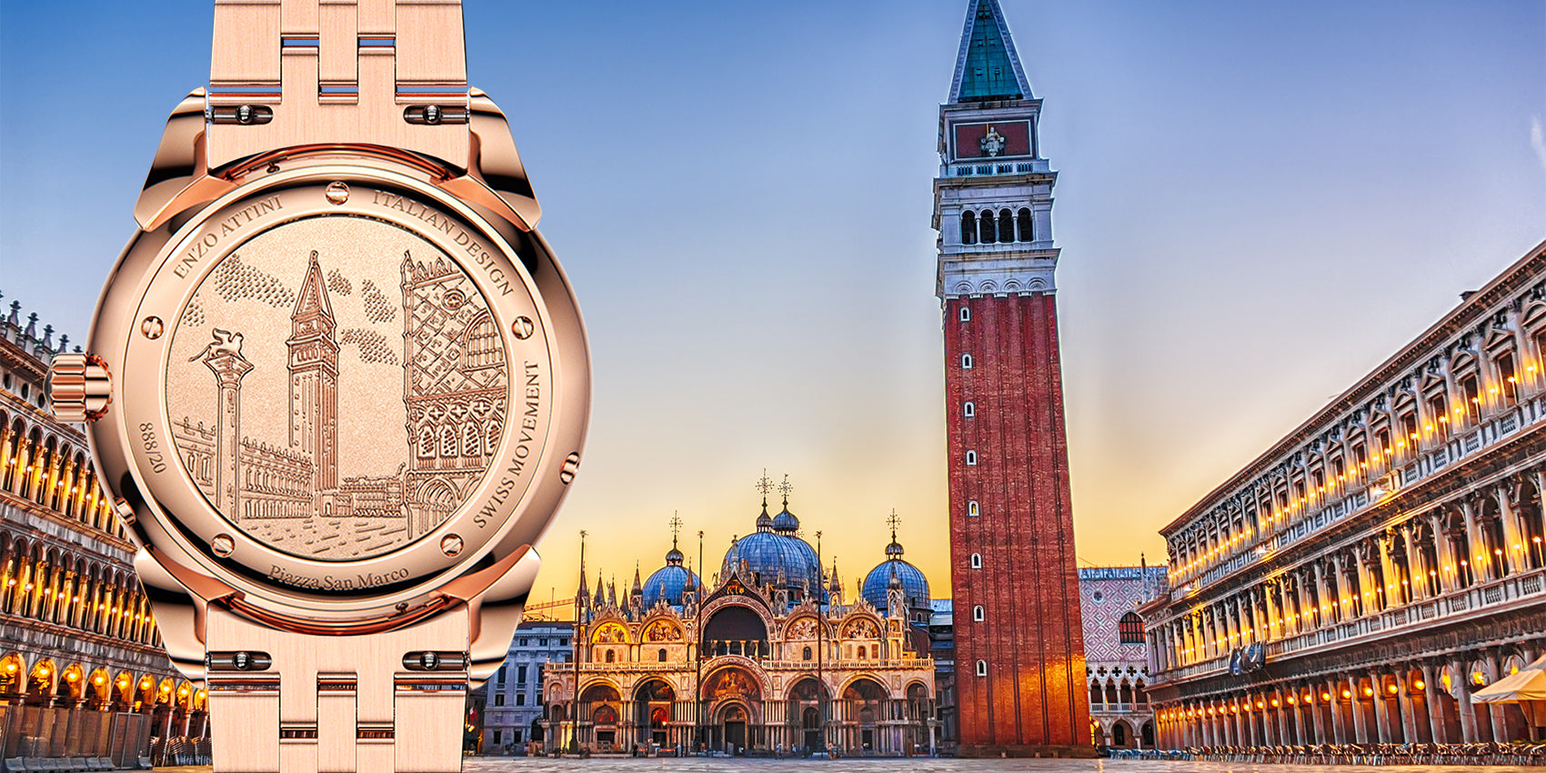 Me këtë orë, Enzo Attini përfaqëson traditën e mrekullueshme të dizajnit italian dhe trashëgimisë kulturore. Esenca e secilit dizajn dhe gdhendja e saj artizanale në kasën e pasme, janë të frymëzuara nga historia, arti dhe trashëgimia kulturore italiane, si dhe nga vendet mahnitëse që shërbejnë si destinacionet më të mrekullueshme në Itali.