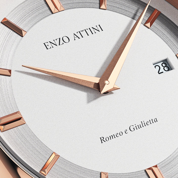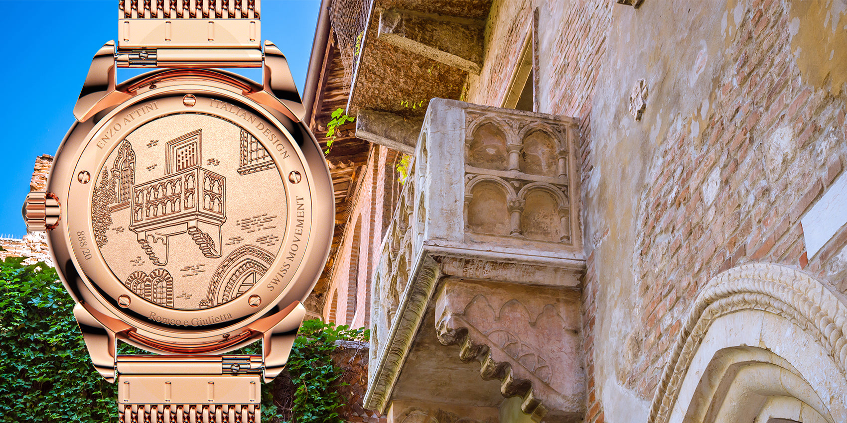 Me këtë orë, Enzo Attini përfaqëson traditën e mrekullueshme të dizajnit italian dhe trashëgimisë kulturore. Esenca e secilit dizajn dhe gdhendja e saj artizanale në kasën e pasme, janë të frymëzuara nga historia, arti dhe trashëgimia kulturore italiane, si dhe nga vendet mahnitëse që shërbejnë si destinacionet më të mrekullueshme në Itali.