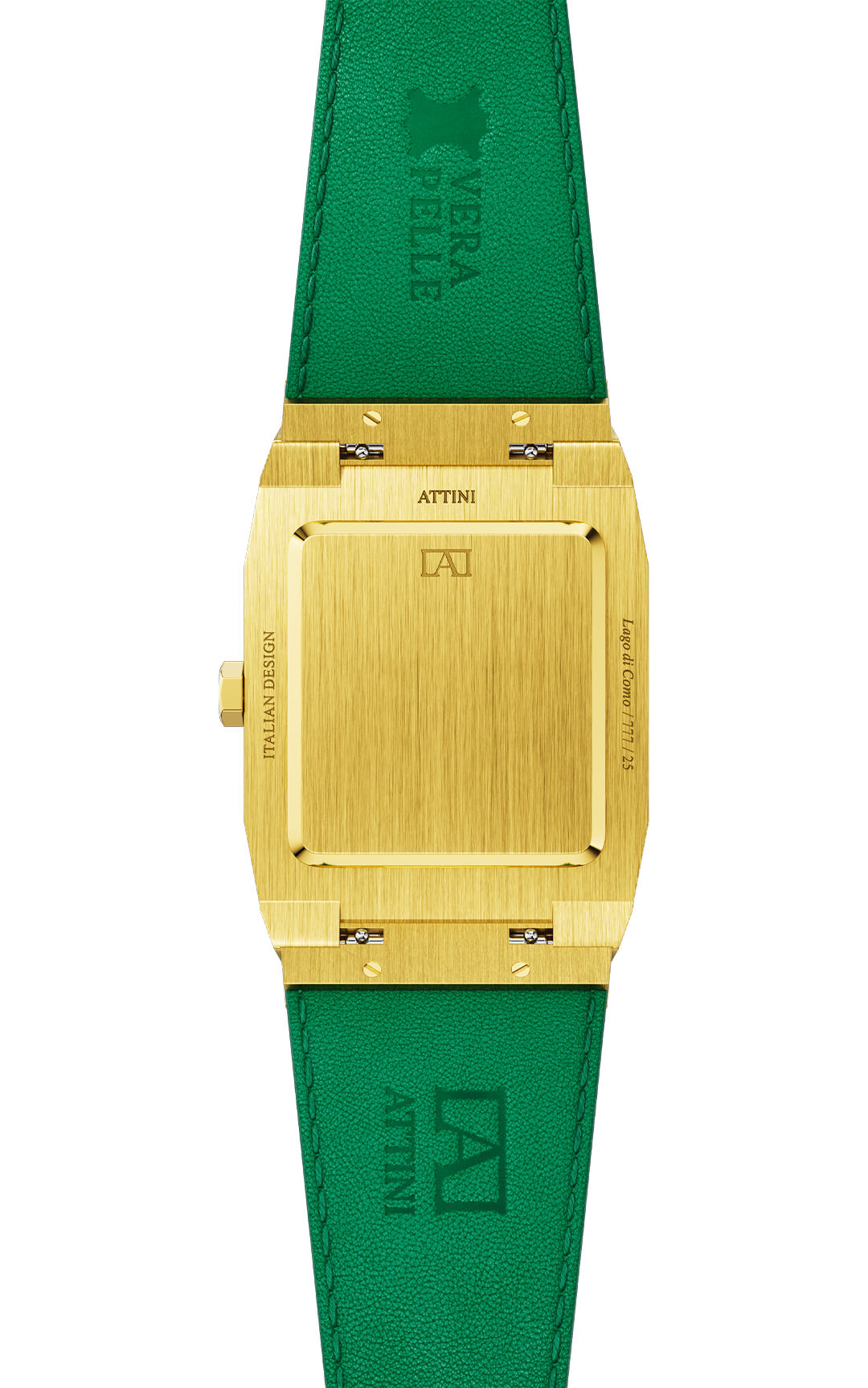 • Rripat: Ora vjen me rrip prej lëkure italiane, ngjyrë jeshil, me përmasa 28.5mm x 20mm, i përshtatshëm për kyç dore me përmasa 16 - 26cm.