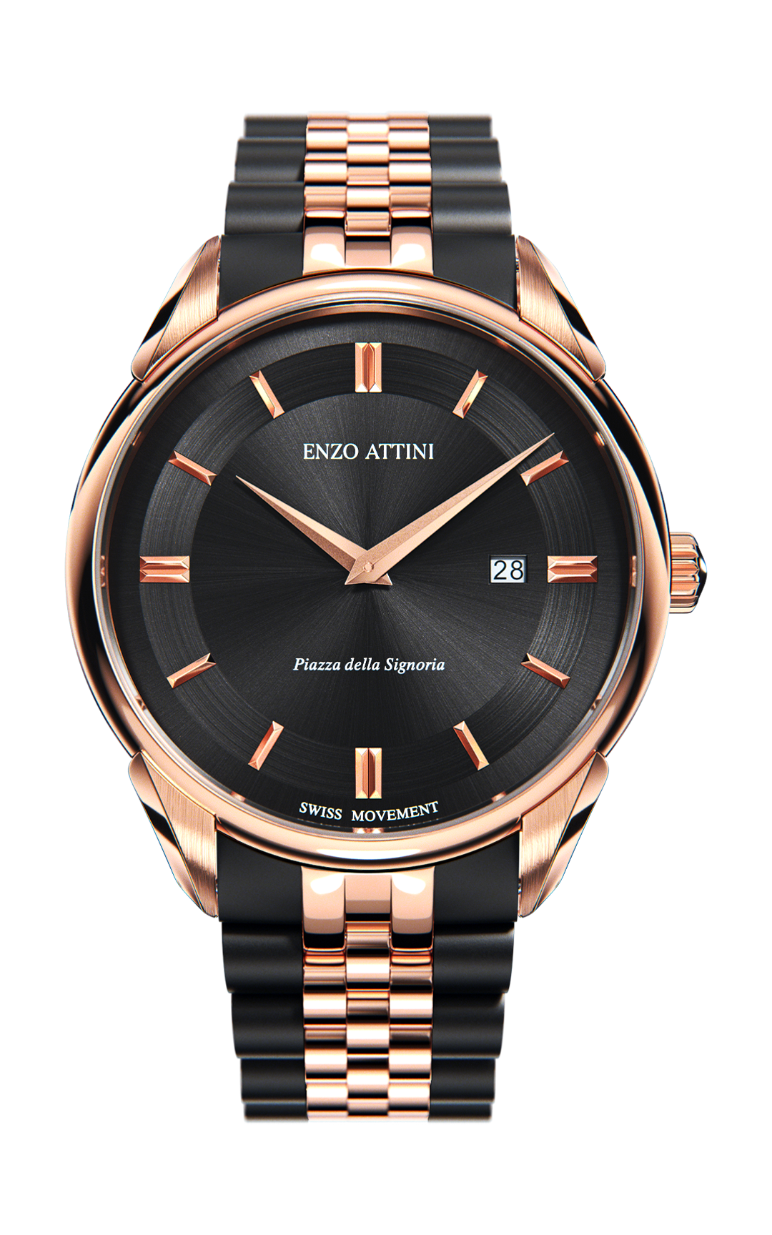 • Kasa: Stainless steel 316L, ngjyrë rose gold (e larë me ar të vërtetë 18 karat), përmasat: 40mm x 8.9mm.